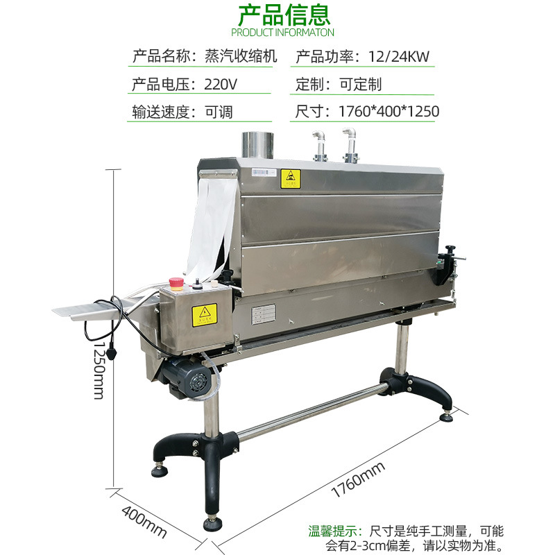 - 蒸汽的高效熱傳遞:蒸汽收縮機(jī)利用蒸汽作為熱源,蒸汽在接觸包裝材料時(shí)會(huì)發(fā)生凝結(jié),釋放出大量的潛熱。這種潛熱的釋放使得包裝材料能夠快速吸收熱量,相比其他一些熱收縮方式(如單純的熱風(fēng)收縮),熱傳遞效率更高。例如,在同等的包裝材料和產(chǎn)品尺寸下,蒸汽收縮機(jī)可能只需要較低的溫度和較短的時(shí)間就能達(dá)到理想的收縮效果,從而節(jié)省能源。