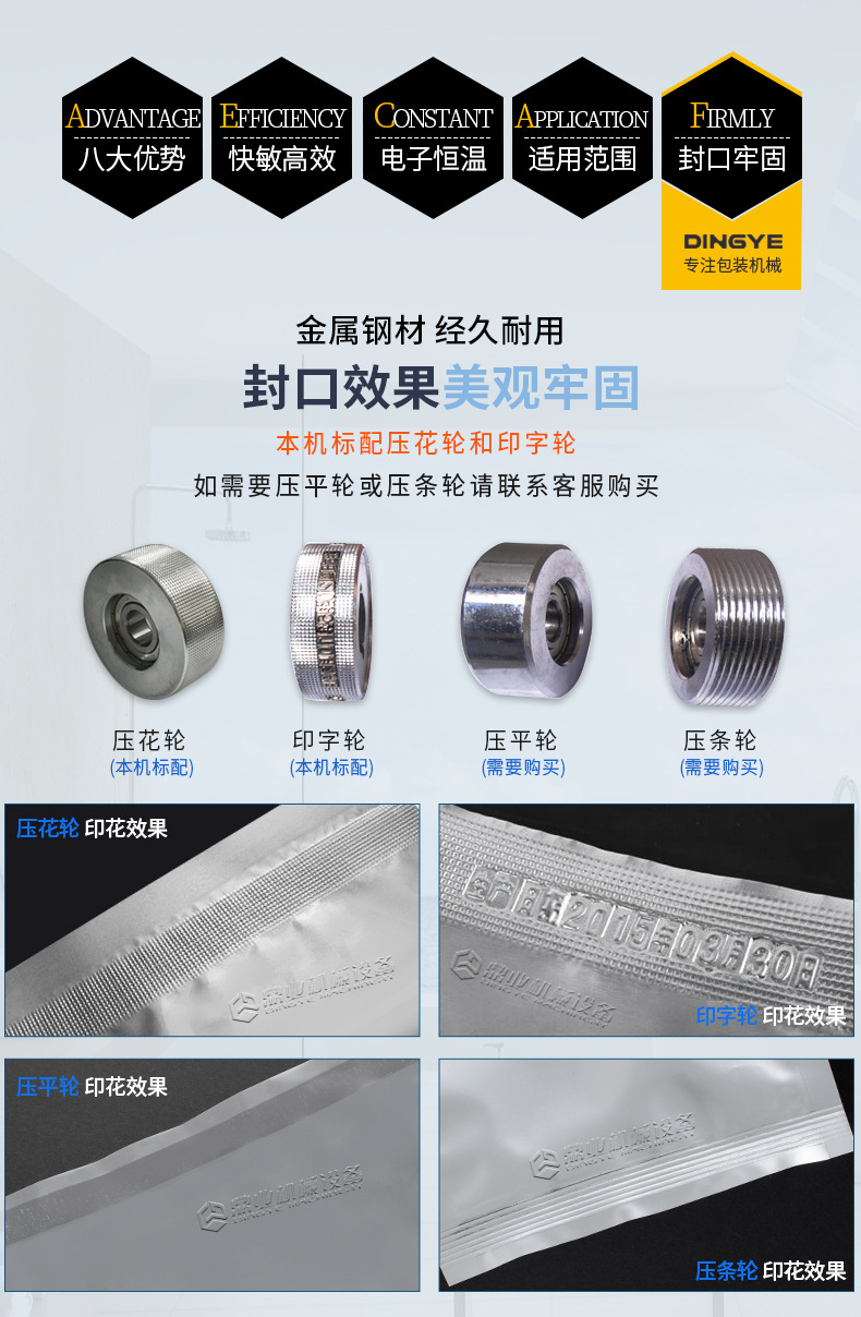 - 針對(duì)鋁箔材料或者鋁箔復(fù)合包裝材料設(shè)計(jì)。鋁箔具有良好的阻隔性,能有效防止氧氣、水分等進(jìn)入包裝內(nèi)部。這種封口機(jī)可以確保鋁箔包裝的密封性,常用于食品、藥品、保健品等行業(yè),如藥品的鋁箔泡罩包裝的封口。