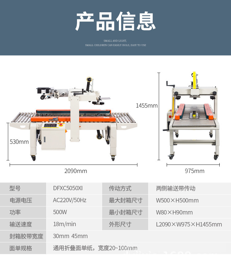 - 產(chǎn)品規(guī)格適配性:可以適應多種不同規(guī)格的紙箱。通過簡單的調節(jié),如傳送裝置的寬度調整、貼標位置的參數(shù)設置等,就能對不同大小、形狀的紙箱進行封箱和貼標。例如,在一個生產(chǎn)多種產(chǎn)品的工廠,產(chǎn)品包裝紙箱有大有小,封箱貼標一體機可以很方便地進行設置,兼容各種規(guī)格的紙箱。