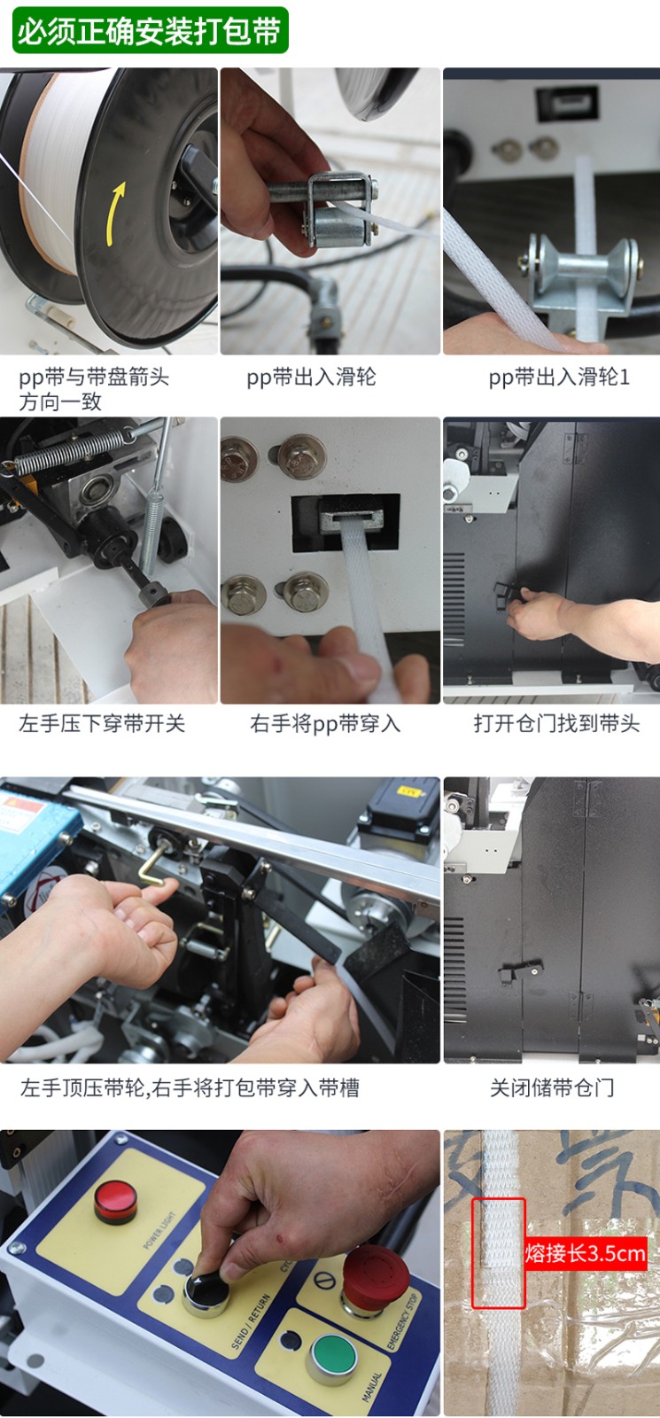 - 寬度:常見的打包帶寬度有 9mm、12mm、16mm、19mm 等4。如果使用的是 9-12mm 的打包帶,可選擇對應寬度規(guī)格的打包機;若使用 16mm 及以上寬度的打包帶,則需選擇能兼容大寬度打包帶的機型。