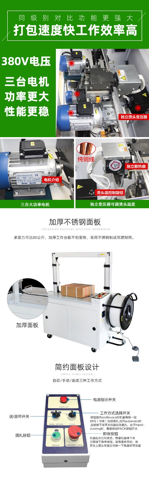 - 自動化程度:若企業(yè)追求高度自動化、無人化生產(chǎn),可選擇具有自動送料、自動定位、自動檢測等功能的全自動電動打包機;若人工輔助打包不影響生產(chǎn)效率,可選擇自動化程度相對較低的機型。