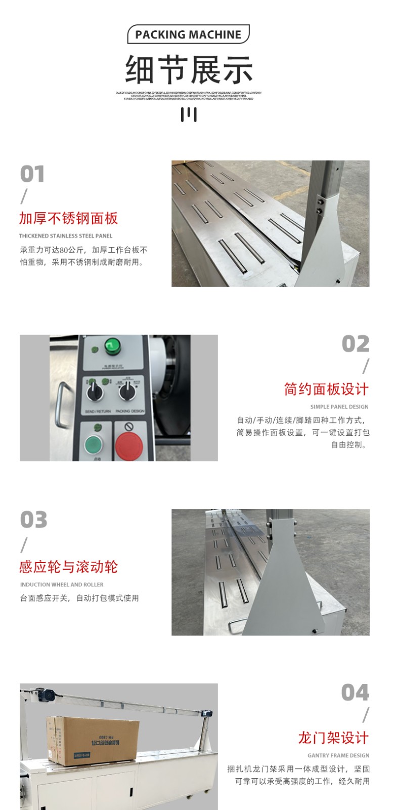 - 智能化控制系統(tǒng):配備先進的微電腦控制系統(tǒng),可精準設定打包參數(shù),如打包帶長度、加熱溫度、壓緊時間等,操作界面直觀易懂,操作人員能輕松根據(jù)不同物品的打包需求進行靈活調(diào)整。