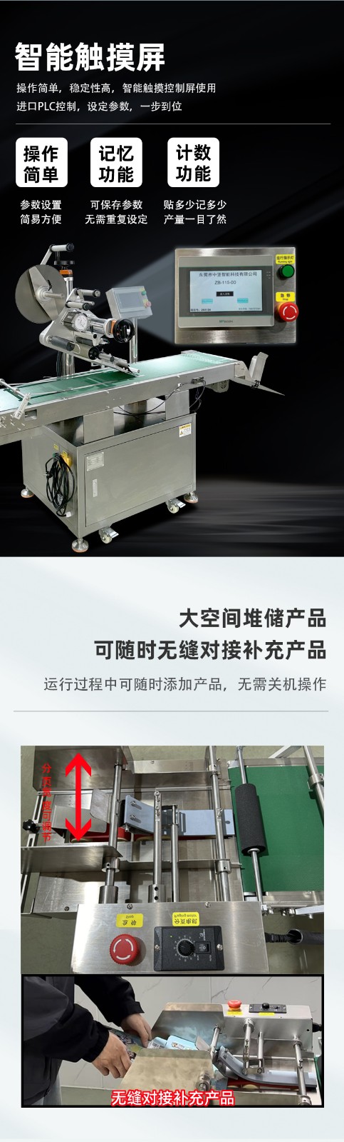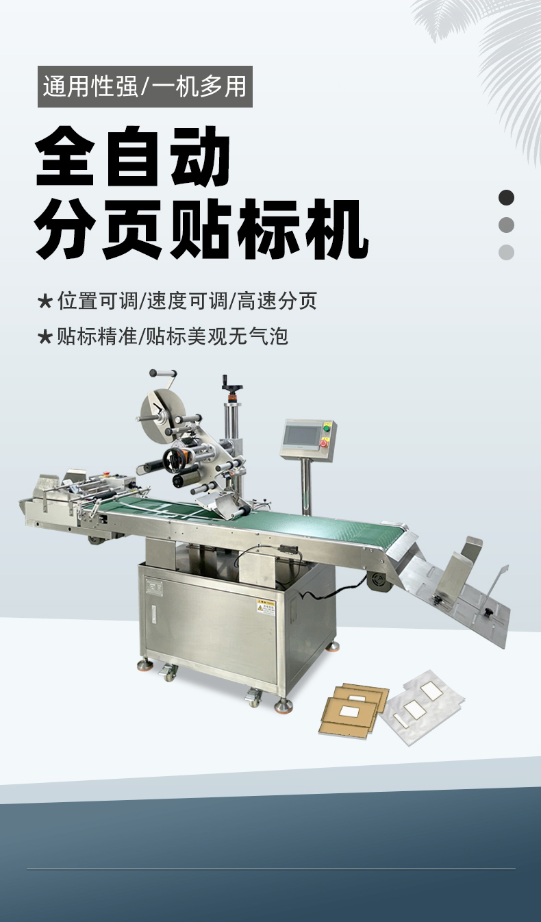 東莞市中堡智能科技實業(yè)有限公司的全自動分頁貼標機:可應用于紙片、名片、標簽、各種材質的卡片、電話卡、IC 卡、IP 卡、游戲沖值卡、塑料復合包裝袋、紙盒片、紙袋等各種厚度各種材質的片狀物品的自動分頁,并進行貼標。以 ±1mm 超高精度和 0-100 個 / 分鐘的極速性能,支持多種標簽類型,廣泛應用于電子、五金、塑膠、化工等行業(yè)。