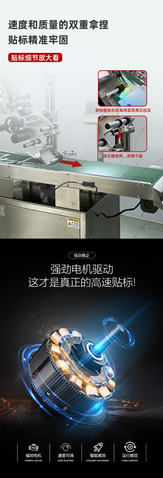 高速度作業(yè):貼標速度超過每分鐘 100 張,能滿足大批量生產需求,極大提高生產效率。