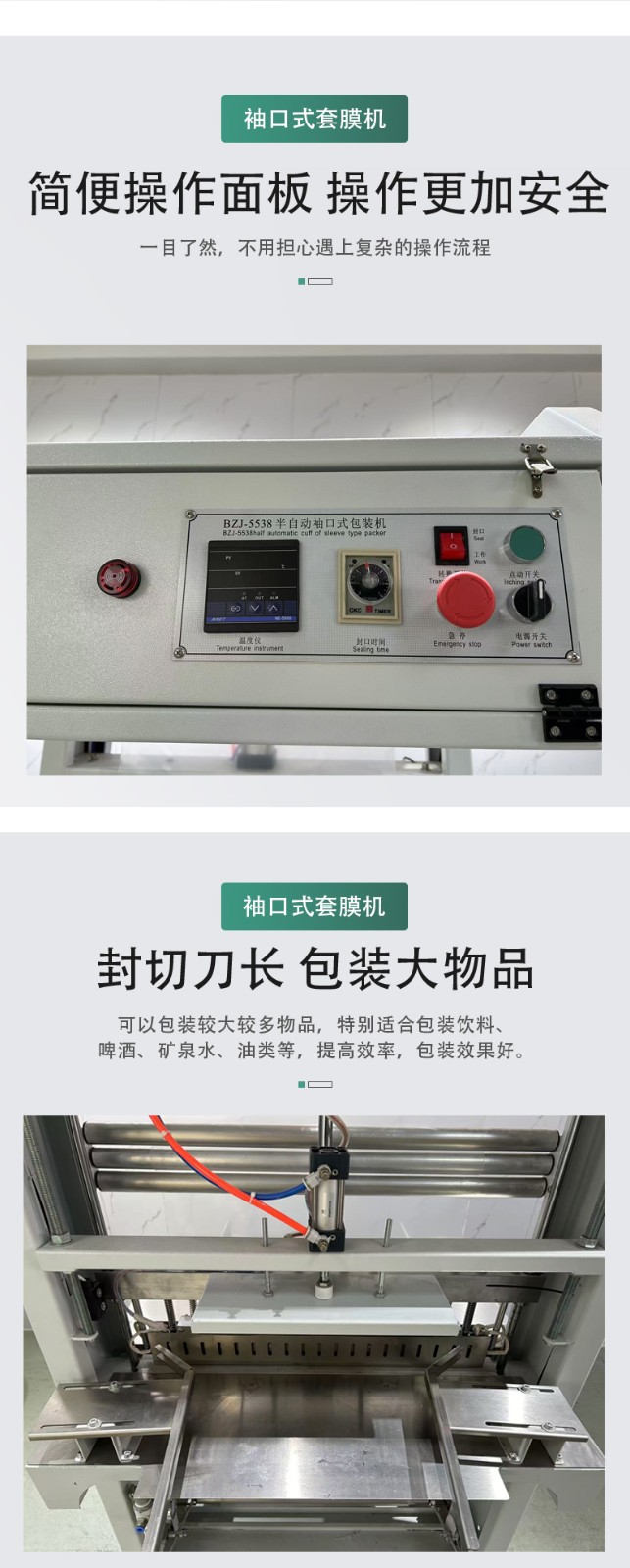 按自動(dòng)化程度分類:可分為半自動(dòng)袖口式熱收縮包裝機(jī)和全自動(dòng)袖口式熱收縮包裝機(jī)。半自動(dòng)需人工輔助完成產(chǎn)品放置或封口操作,適用于中小規(guī)模生產(chǎn);全自動(dòng)則自動(dòng)化完成輸送、封切、收縮等全流程,適合大規(guī)模生產(chǎn)。