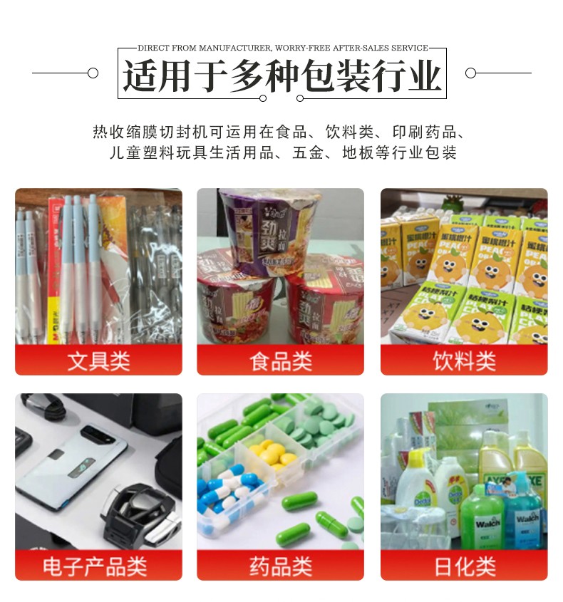 - 自動(dòng)化程度高:配備 PLC 控制系統(tǒng)和光電感應(yīng)裝置,可自動(dòng)完成送膜、封口、熱收縮、出料全流程,無(wú)需人工干預(yù)。