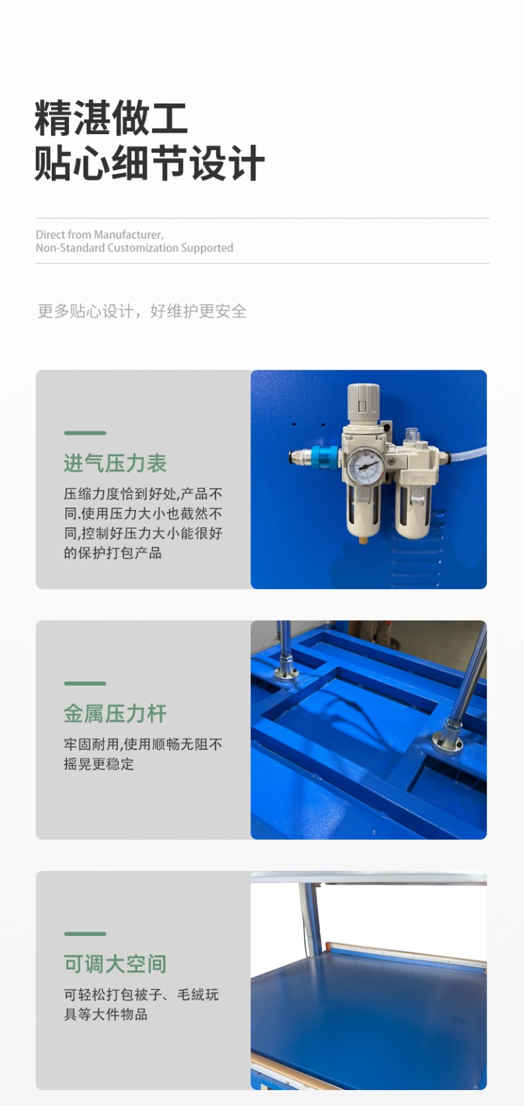 - 材料厚度:過薄的材料(如厚度<0.08mm 的 PE 膜)易被高壓壓破,或因加熱過快焦化;過厚的材料(如厚度>0.2mm 的復(fù)合膜)若溫度、壓力不足,會出現(xiàn)熔化不徹底、封口分層的問題。