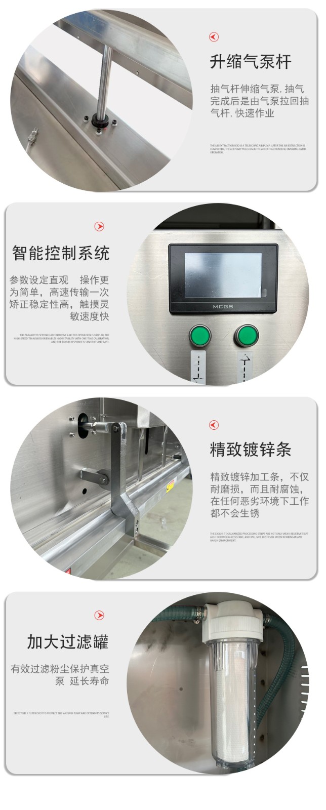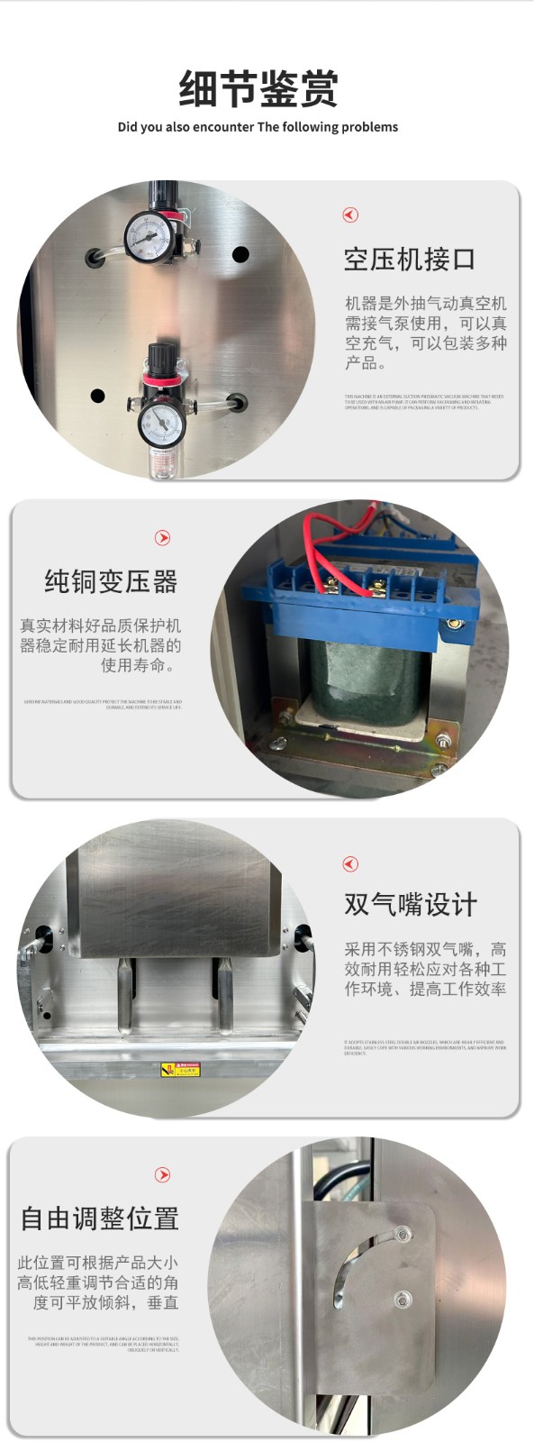 - 五金機(jī)械:小型機(jī)械零件(如軸承、齒輪組)、異形金屬工具,可根據(jù)零件高度調(diào)整工作臺(tái),避免包裝時(shí)變形。