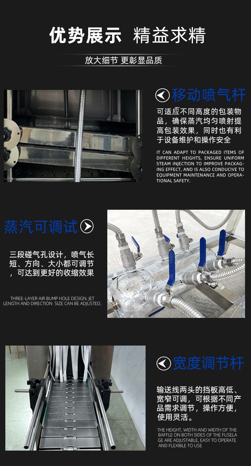 蒸汽收縮機(jī)的核心工作原理是利用蒸汽的均勻熱量,使熱收縮膜受熱后緊密包裹產(chǎn)品,最終完成密封定型的自動(dòng)化包裝過(guò)程。