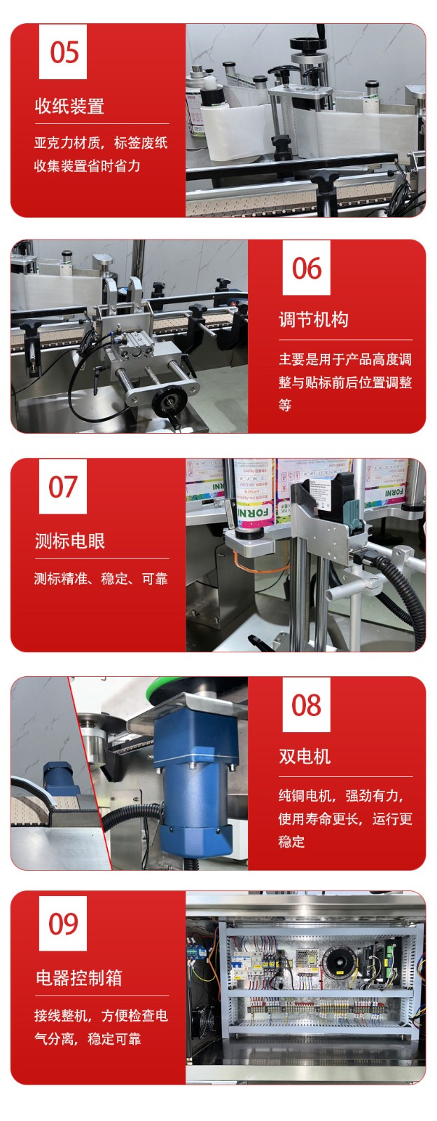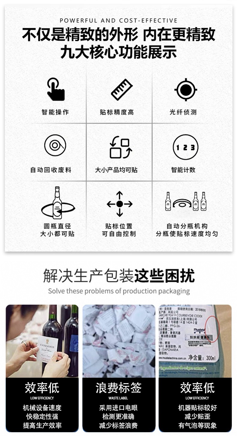 圓瓶定位貼標(biāo)機(jī)的核心優(yōu)勢是精準(zhǔn)度高、適配性強(qiáng)、自動化程度高,其效率則體現(xiàn)在穩(wěn)定的貼標(biāo)速度和低故障率上,能顯著降低人工成本并提升包裝一致性。