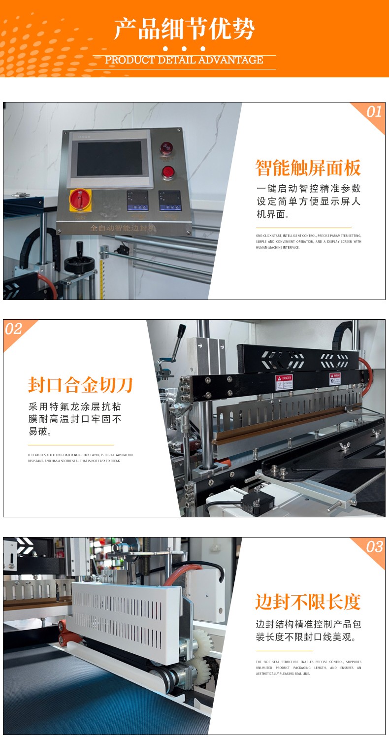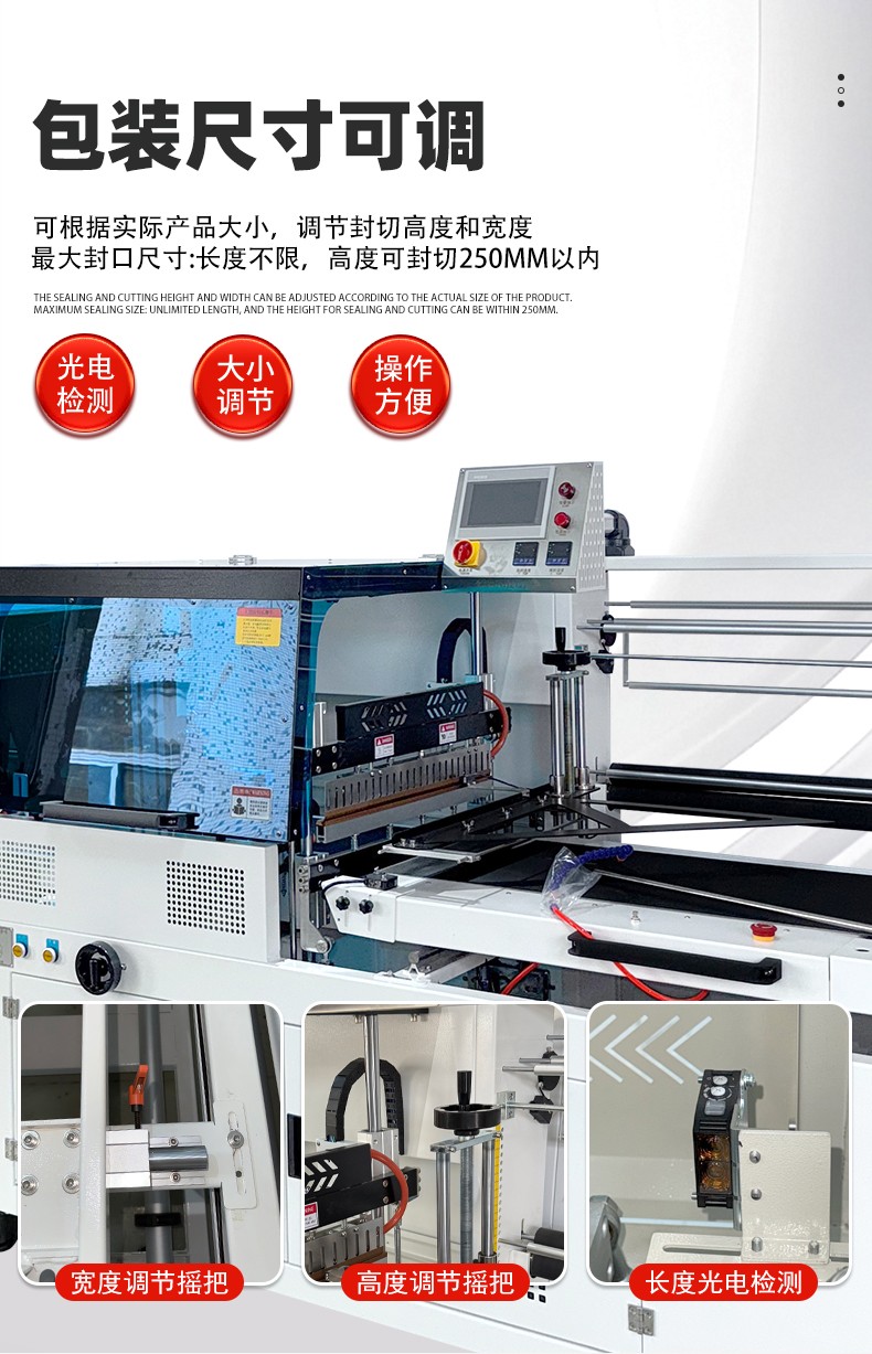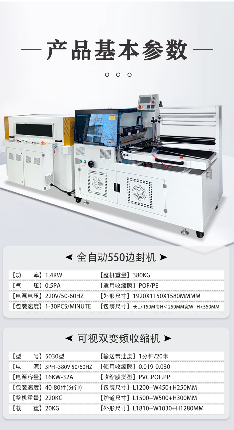 全自動邊封熱收縮包裝機自動化程度高,邊封設計使產(chǎn)品包裝長度無限制