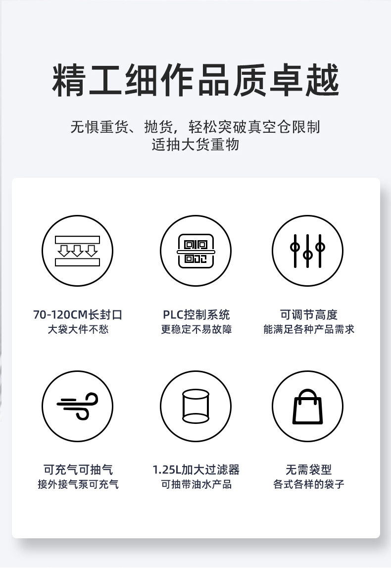 硬件適配保障:這類設(shè)備的外殼和真空室多采用不銹鋼材質(zhì),抗腐蝕、不易生銹,即便接觸醬料、海鮮等帶水分的物料,也能穩(wěn)定運行,且清潔方便,可避免潮濕環(huán)境對機器的損壞。部分機型還針對液態(tài)物料優(yōu)化了密封結(jié)構(gòu),防止包裝時液體滲漏影響設(shè)備部件。