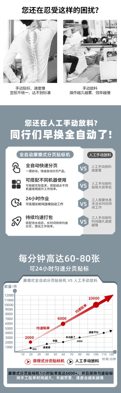 省人工成本:自動完成分頁、貼標(biāo)、覆標(biāo)全流程,1 臺設(shè)備可替代 3-5 名人工,且避免人工操作誤差。