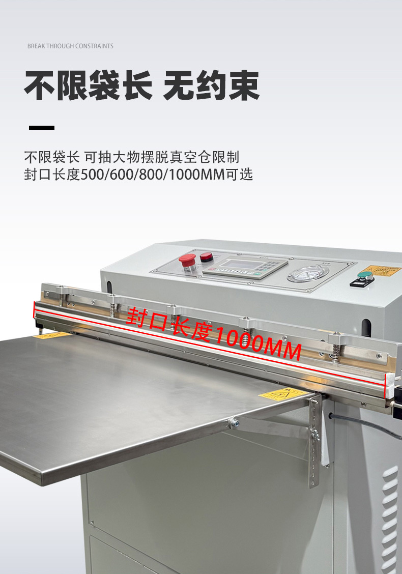 - 外抽真空包裝機的熱封條通常位于抽氣嘴下方或封口機構(gòu)處,外部有金屬防護蓋(防止誤觸高溫)。