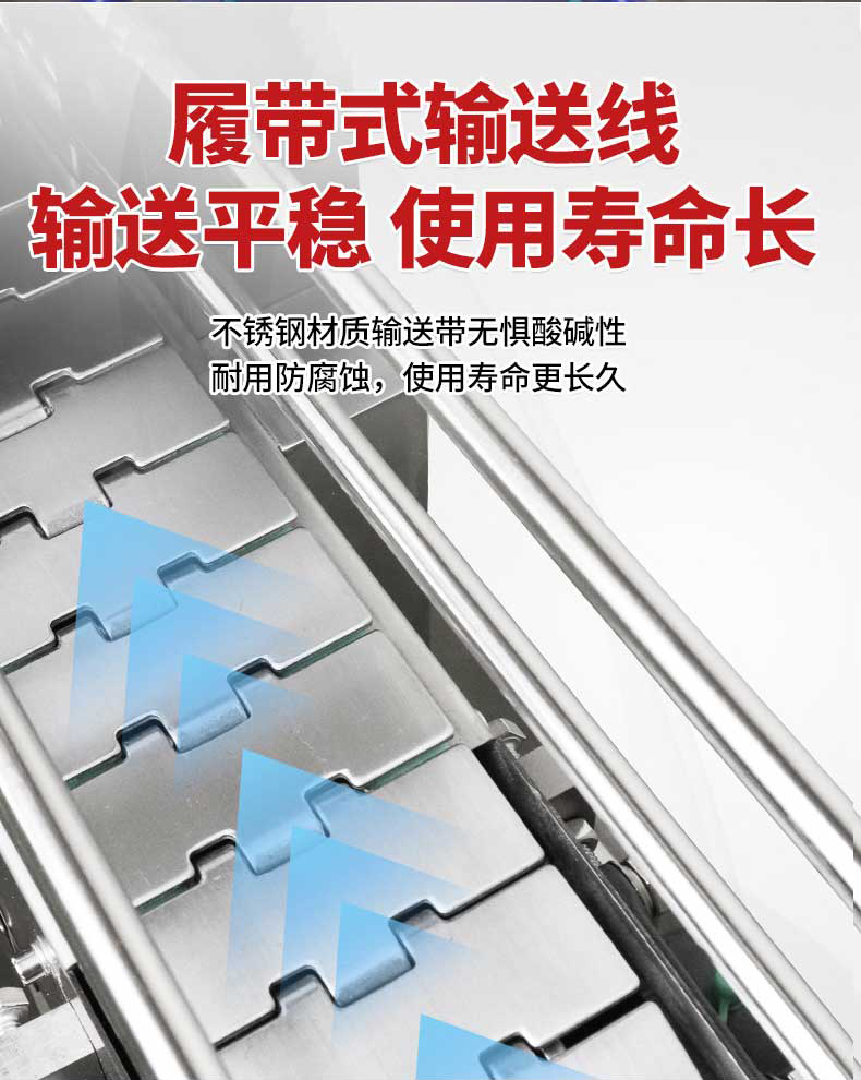 - 傳動系統(tǒng):采用網(wǎng)帶、鏈板或滾筒輸送產(chǎn)品,速度可變頻調節(jié),通常為 0.5-10m/min,以適應不同產(chǎn)能需求。