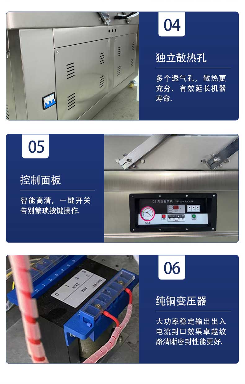 - 回氣與開(kāi)蓋:當(dāng)達(dá)到設(shè)定熱封時(shí)間時(shí),熱封指示燈熄滅,真空室經(jīng)電磁閥進(jìn)入大氣,直至機(jī)蓋自動(dòng)抬啟,取出包裝好的產(chǎn)品,完成一次包裝循環(huán)。