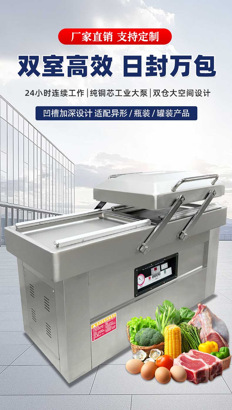 - 高效包裝:兩個(gè)真空室可交替工作,當(dāng)一個(gè)真空室進(jìn)行抽真空和封口操作時(shí),另一個(gè)真空室可進(jìn)行下一批產(chǎn)品的擺放等準(zhǔn)備工作,大大提高了包裝效率,減少了整體運(yùn)作時(shí)間3。