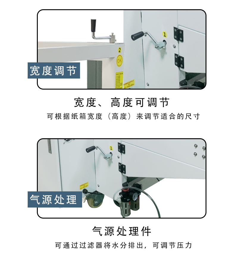 - 適用范圍廣:可適用于各種材質(zhì)和尺寸的紙箱,無論是紙質(zhì)較硬的重型紙箱,還是普通的輕型紙箱,都能進(jìn)行良好的封箱操作。對于不同規(guī)格的紙箱,只需對機(jī)器進(jìn)行簡單的調(diào)整即可適應(yīng)。
