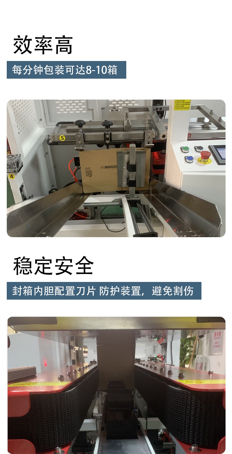 - 封箱速度快:膠帶封箱開箱封底機(jī)能夠快速完成紙箱的封底操作,其自動化程度高,可在短時(shí)間內(nèi)完成大量紙箱的封裝,能有效提高包裝效率,滿足大規(guī)模生產(chǎn)的需求。