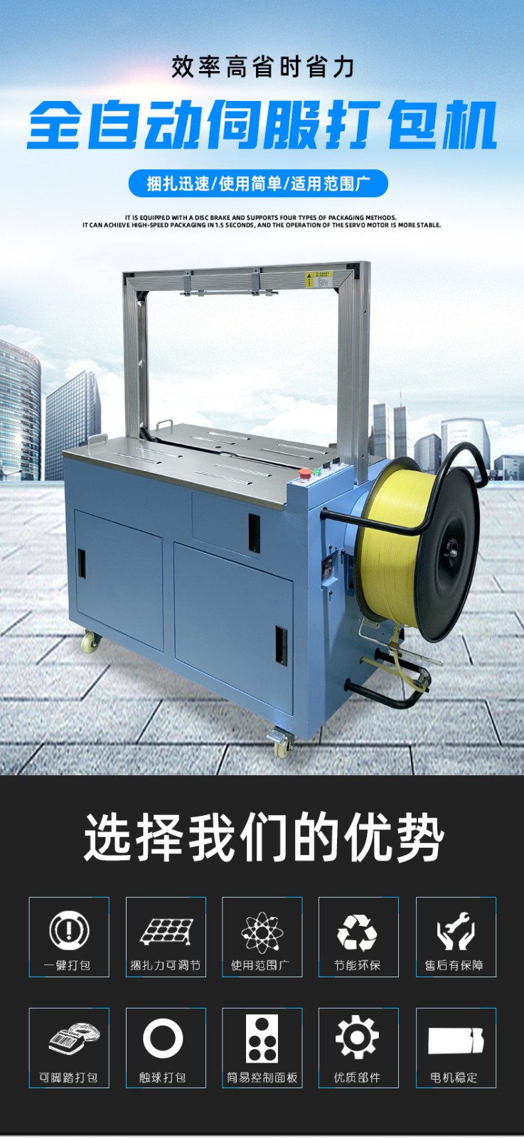 - 全自動打包機(jī):自動化程度高,能自動完成送帶、捆扎、收緊、封口、切斷等一系列打包流程,只需將物品放置在指定位置,按下啟動按鈕,機(jī)器就會按照預(yù)設(shè)程序完成整個打包過程,無需人工干預(yù)每個步驟。
