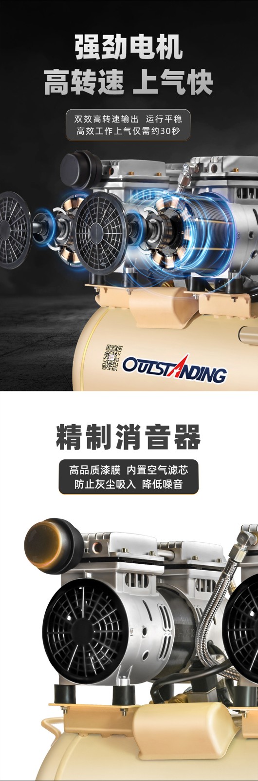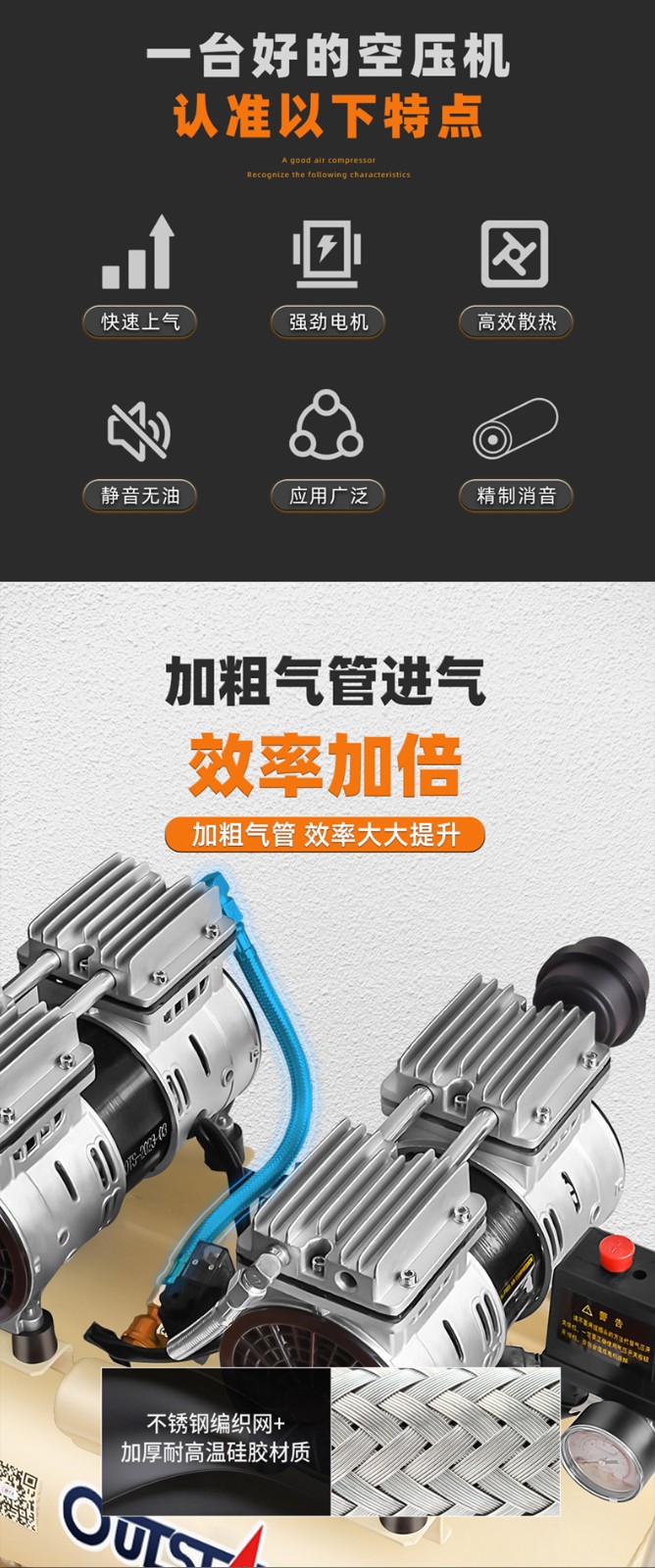 全新充氣泵靜音無油空氣壓縮機高壓打氣泵工業(yè)級空氣大功率充氣