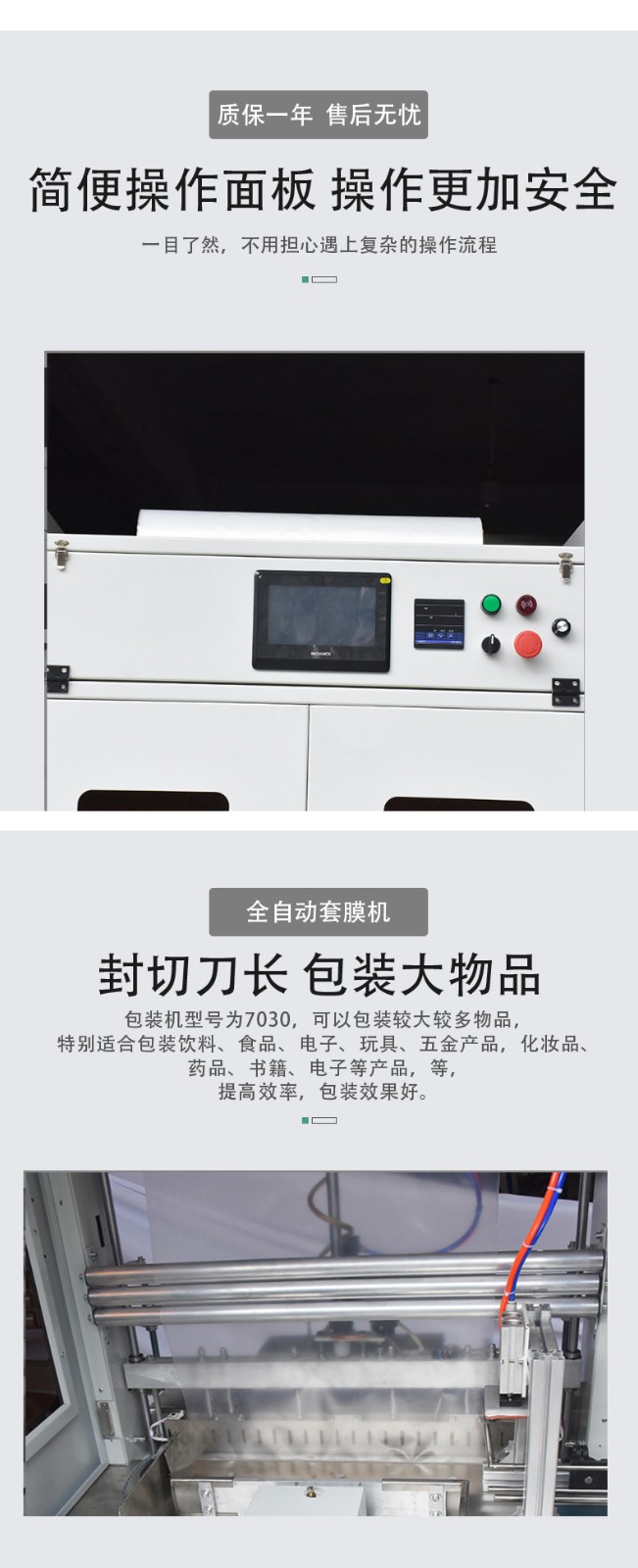 - 高速套膜:具有較高的套膜速度,每分鐘可以完成多件產(chǎn)品的套膜,極大地提高了包裝作業(yè)的速度。相比傳統(tǒng)的手工套膜或半自動(dòng)套膜設(shè)備,其效率提升顯著,能夠滿足大規(guī)模生產(chǎn)的需求。