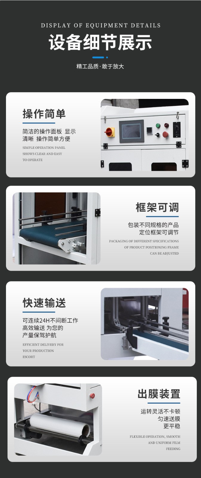 - 適用范圍廣:可以適應(yīng)多種產(chǎn)品的套膜需求。對于不同尺寸、形狀和重量的產(chǎn)品,只要在設(shè)備的規(guī)格范圍內(nèi),都可以進(jìn)行套膜。同時(shí),它也能夠使用多種類型的包裝薄膜,如 PE、PVC 等常見薄膜,企業(yè)可以根據(jù)產(chǎn)品的特性和成本等因素靈活選擇薄膜材料。
