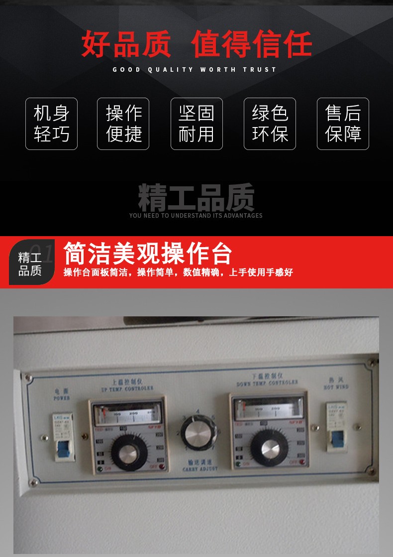 - 控制系統(tǒng):是設(shè)備的 “大腦”,可以對(duì)加熱溫度、輸送速度、噴氣強(qiáng)度等參數(shù)進(jìn)行設(shè)置和控制。操作人員可以通過控制面板方便地操作機(jī)器,并且控制系統(tǒng)還具備溫度監(jiān)控和故障報(bào)警功能。例如,如果加熱溫度過高或過低,系統(tǒng)會(huì)發(fā)出警報(bào)并自動(dòng)調(diào)整溫度;如果機(jī)器出現(xiàn)故障,如風(fēng)機(jī)故障或輸送帶卡頓,也會(huì)及時(shí)提示操作人員進(jìn)行維修。