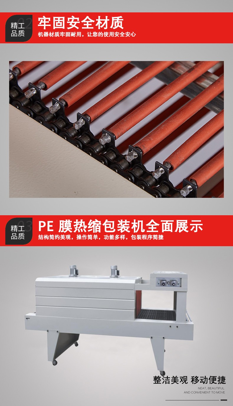 - 包裝質(zhì)量高:PE 熱收縮包裝機(jī)能夠使 PE 薄膜緊密地貼合產(chǎn)品,包裝后的產(chǎn)品外觀整潔、美觀,沒有褶皺。由于 PE 薄膜本身具有良好的柔韌性和透明度,包裝后的產(chǎn)品可以清晰地展示其形狀和外觀,同時(shí)也能有效地防止灰塵、水分等進(jìn)入產(chǎn)品,起到很好的保護(hù)作用。