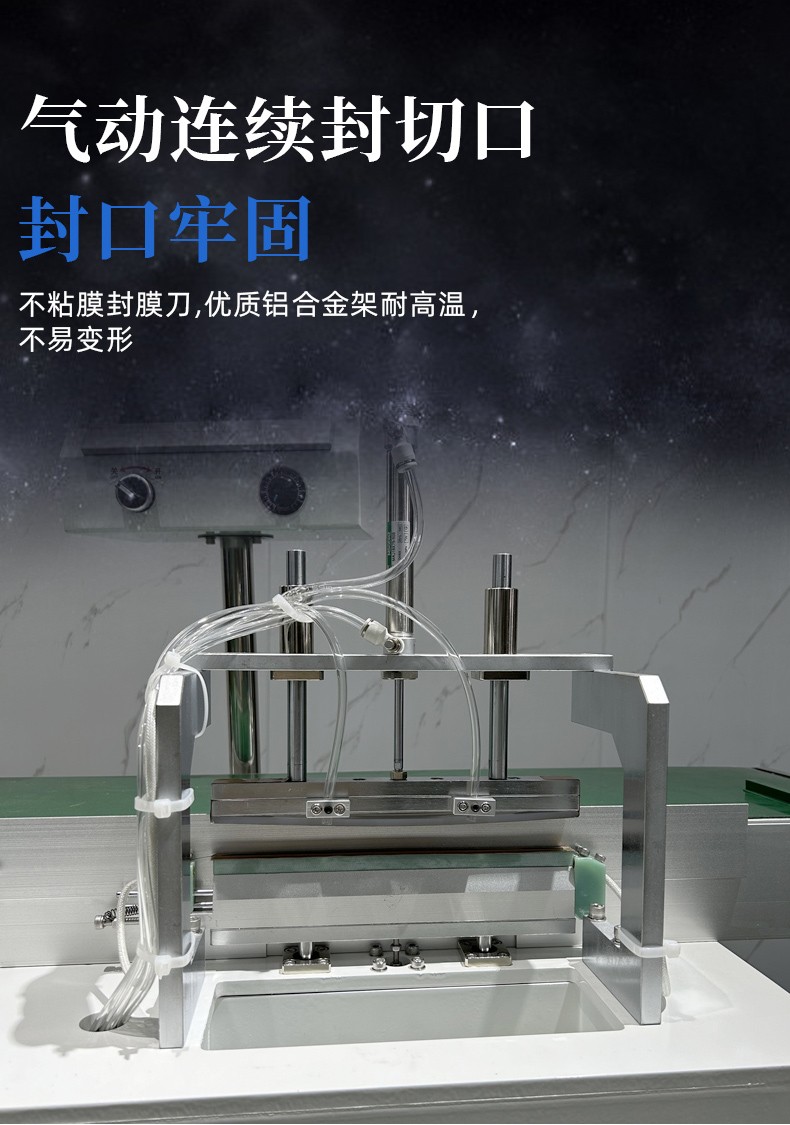 - 封切執(zhí)行:準(zhǔn)備工作完成后,氣動(dòng)缸在控制系統(tǒng)的指令下迅速動(dòng)作,推動(dòng)封切刀向下運(yùn)動(dòng),對(duì)位于封切位置的包裝材料進(jìn)行封口和切斷操作。封切刀在下降過程中,會(huì)先對(duì)包裝材料進(jìn)行加熱加壓,使包裝材料的封口部分迅速熔化并粘合在一起,然后在壓力和刀刃的作用下完成切斷動(dòng)作,將包裝好的物品與未包裝的材料分離。