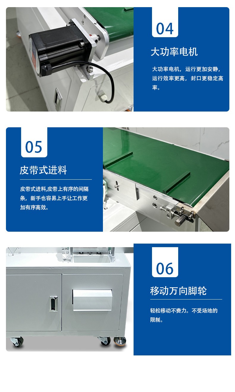 - 物料輸送:待包裝的物品放置在輸送帶上,輸送帶在驅(qū)動(dòng)電機(jī)的帶動(dòng)下勻速運(yùn)轉(zhuǎn),將物品連續(xù)不斷地輸送至封切位置。