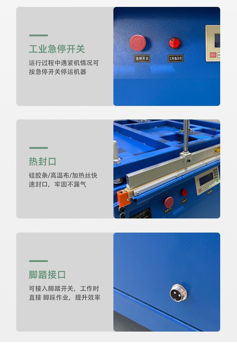 真空壓縮封口機:集成抽真空功能,先抽走包裝內空氣(如食品袋、零件袋),再加壓封口,適合需要防潮、保鮮、防氧化的場景(如肉類真空包裝、精密零件防銹包裝)。